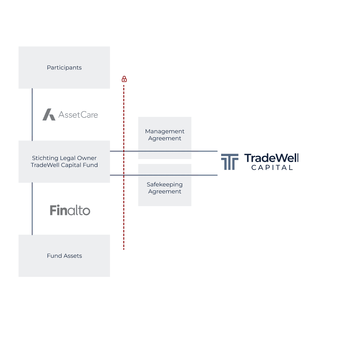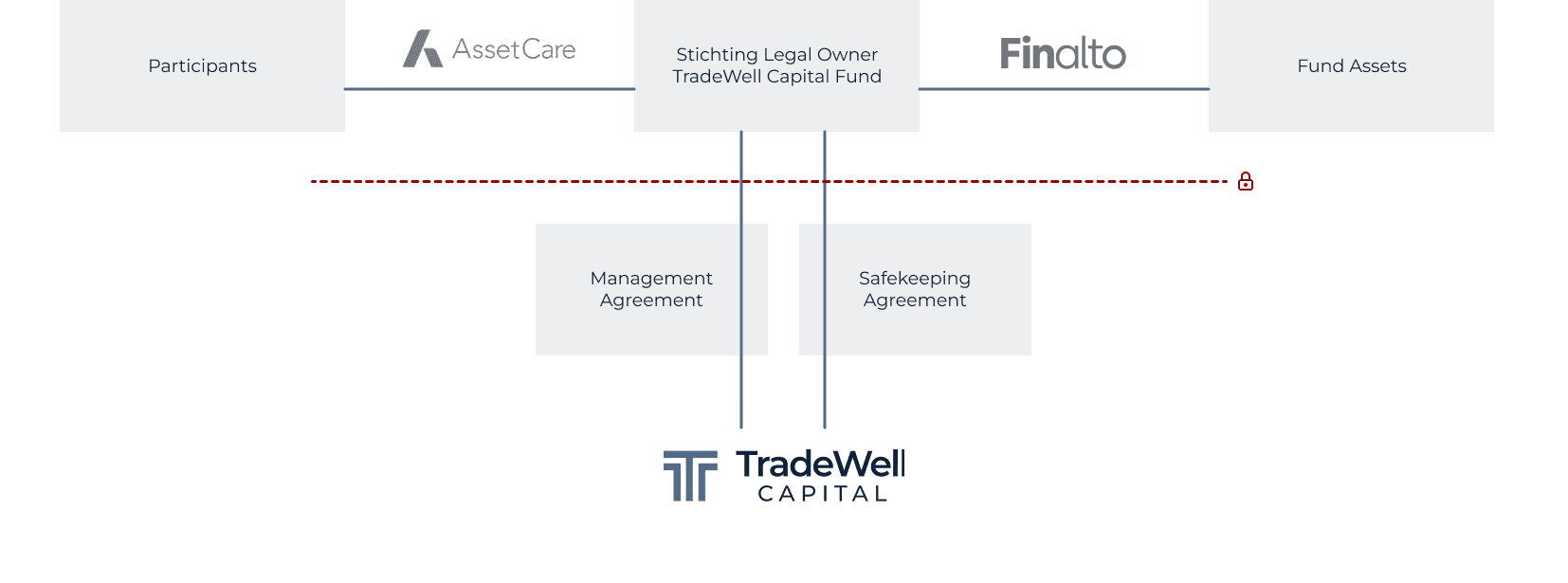 TradeWell Capital has the structure of a Fund for Common Account (FGR) under Dutch law. There is a separation between TradeWell Capital BV and the funds of investors. The funds of our investors are placed in a separate Dutch foundation. In addition, AssetCare is our independent administrator.